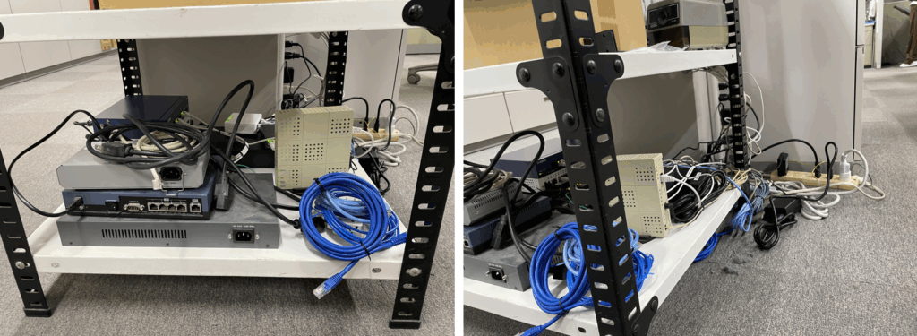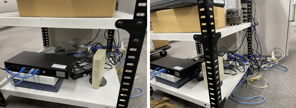 - ラック内の配線が乱雑で、触るのが怖い状態